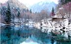 Khu thắng cảnh Cửu Trại Câu phủ tuyết vào mùa đông.