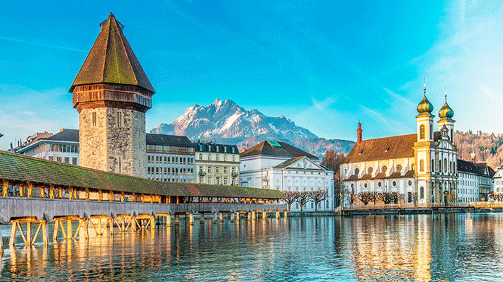 Trưa: Dùng bữa trưa tại nhà hàng địa phương. Sau đó, tiếp tục hành trình về thành phố Lucerne (~36 km), viên ngọc cổ kính bên hồ nước trong xanh, được bao quanh bởi những đỉnh núi phủ tuyết.