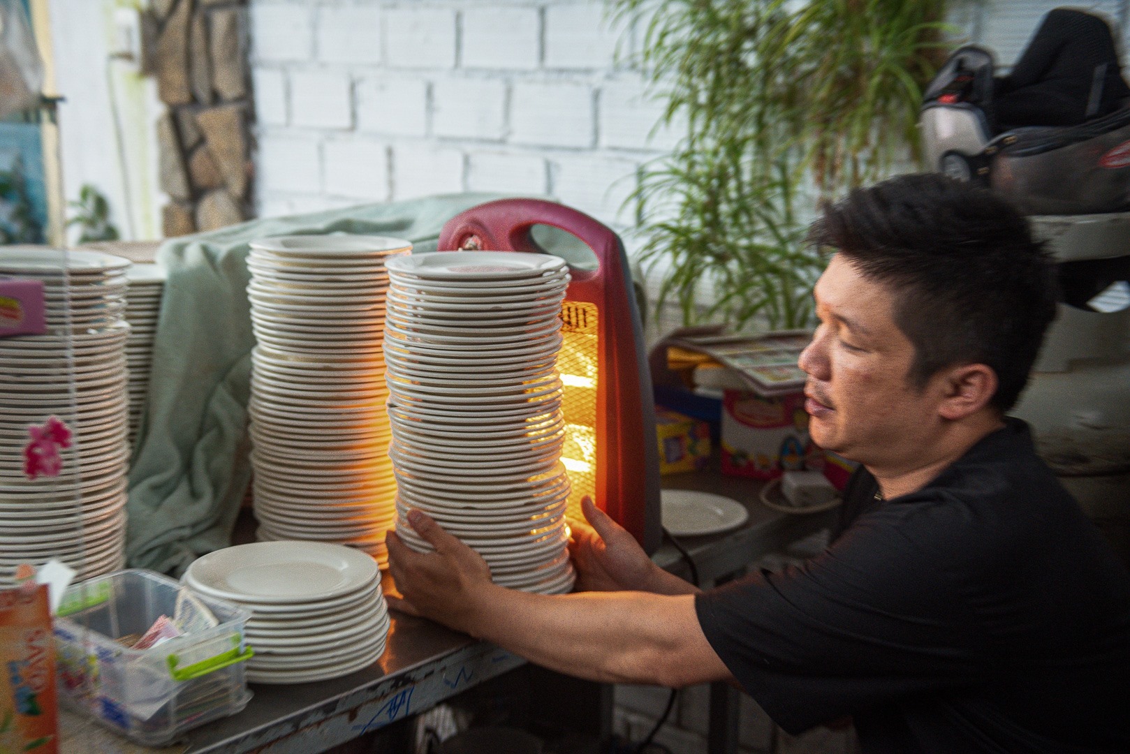 Những chiếc đĩa được xếp chồng sau khi ăn xong. Ảnh: Trang Vũ
